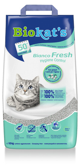 A Gimpet Biocats Bianco Fresh Macskaalom kizárólag természetes alapanyagokból tevődik össze. 4-szer kiadósabb mint a hagyományos almok, a macskavécét ember és állat számára egyaránt kellemes, friss illatúvá teszi. Hosszantartó szagmegkötés, különlegesen erős csomóképződés, tavaszillatú anyag jellemzi.